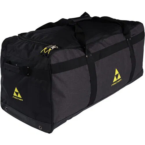 Uma mala de transporte de poliéster resistente com fundo totalmente emborrachado e ventilado, bolsos internos para patins e alças reforçadas para armazenamento, ventilação e transporte duráveis de equipamentos.